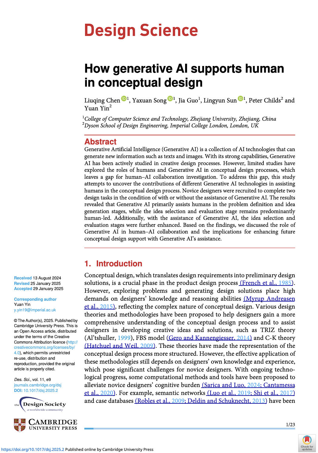 She is the director of IICL-Lab (Intelligent innovation and cognition lab). She was nominated and awarded “Early Career Research Achievements in Design Research Award” by Design society in 2025. She was the co-founder of AI & Design Special interest group.